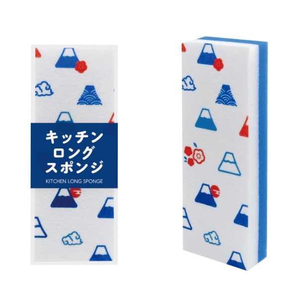 富士山のポップなデザインが嬉しいスポンジは、 ロングタイプなので細長いグラス等を洗うのに便利です。