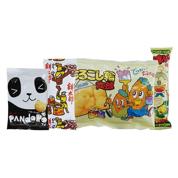 たっぷり4点の駄菓子が入っているので受け取った方の満足度が高いアイテムです。