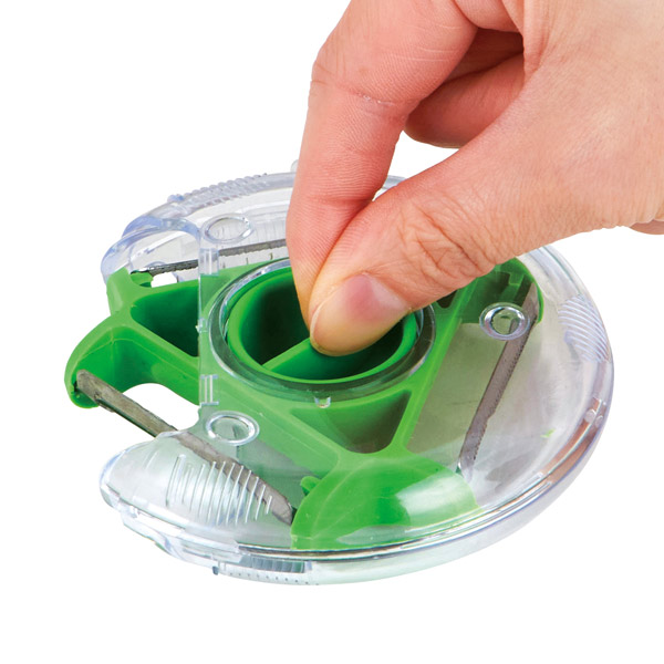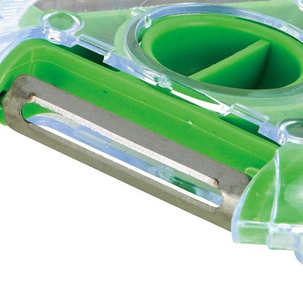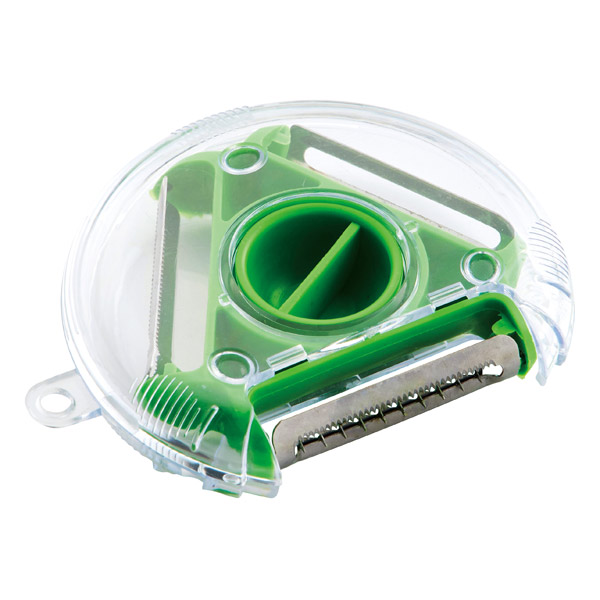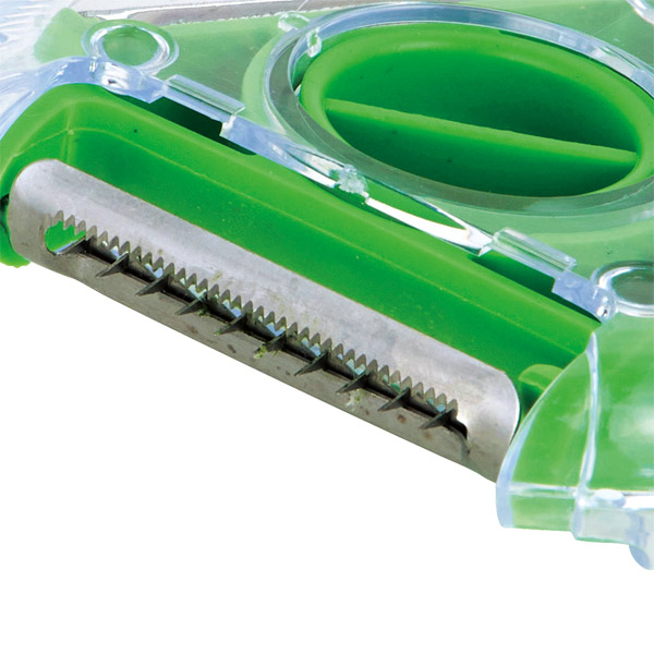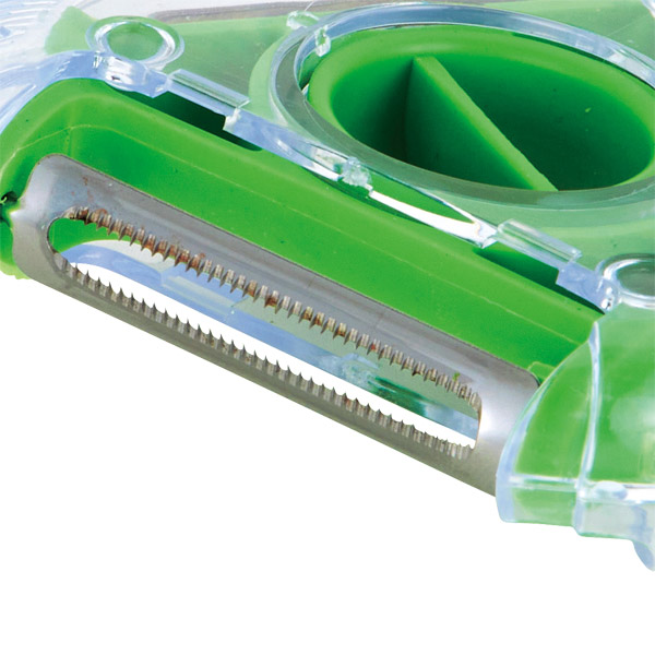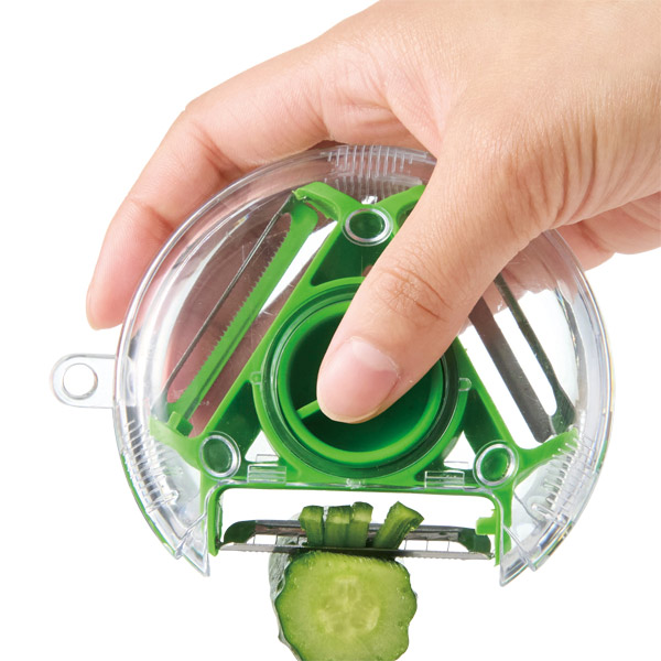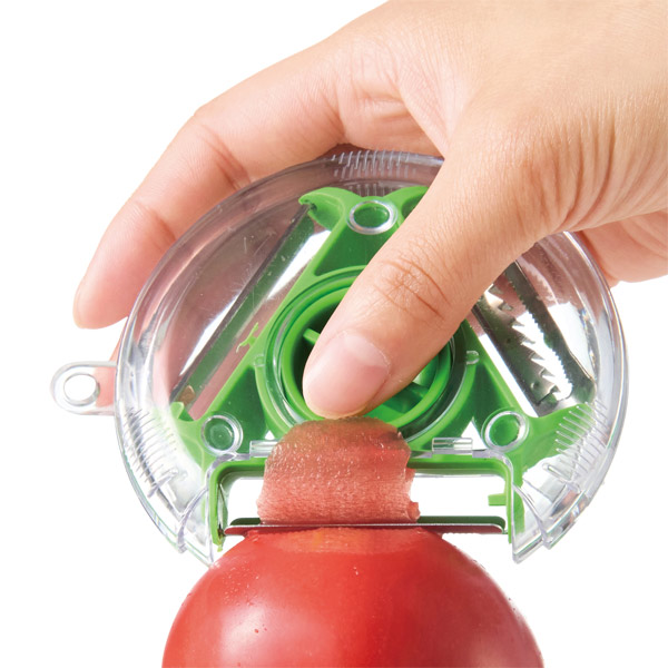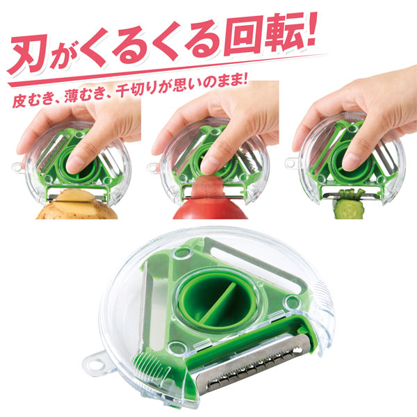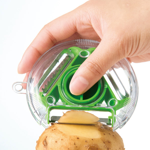 中央のダイヤルを回転させて3種類の刃を使い分けできる3WAYピーラー。