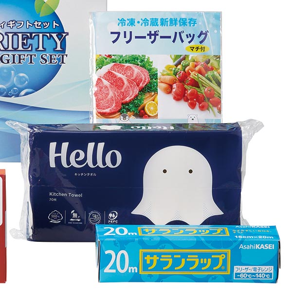 チャーミーマジカ220ml、ハローキッチンペーパー70枚、フリーザーバッグ2枚