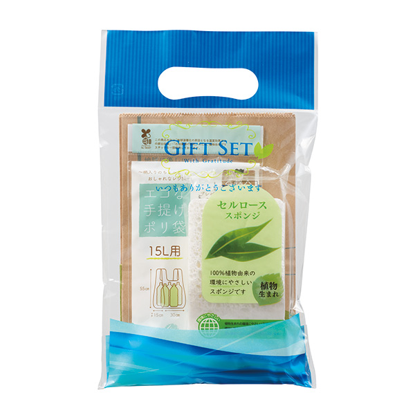 手提げポリ袋2枚、セルローススポンジ、紙製水切り袋2枚
