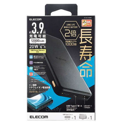 品番:121890 エレコム リン酸鉄モバイルバッテリー 12000mAh