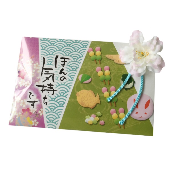 カラフルな金平糖が入っており、うさぎや和菓子等のモチーフがあしらわれた和風パッケージデザインが華やかです。