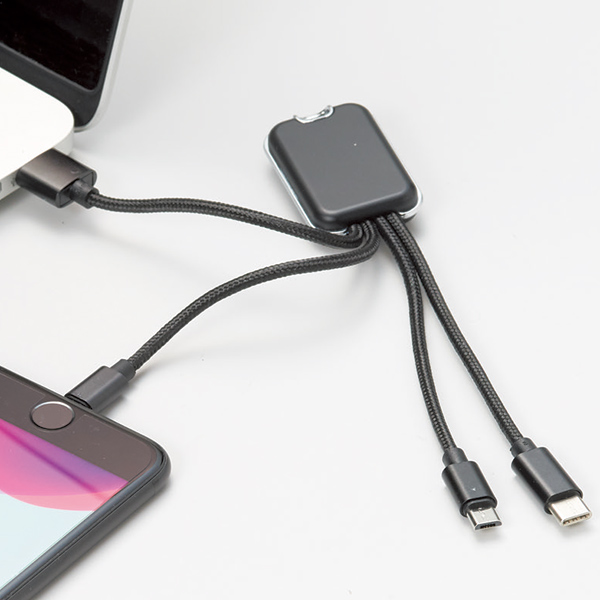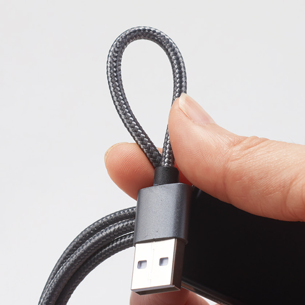USB端子から充電可能で、高耐久性のケーブルを採用。