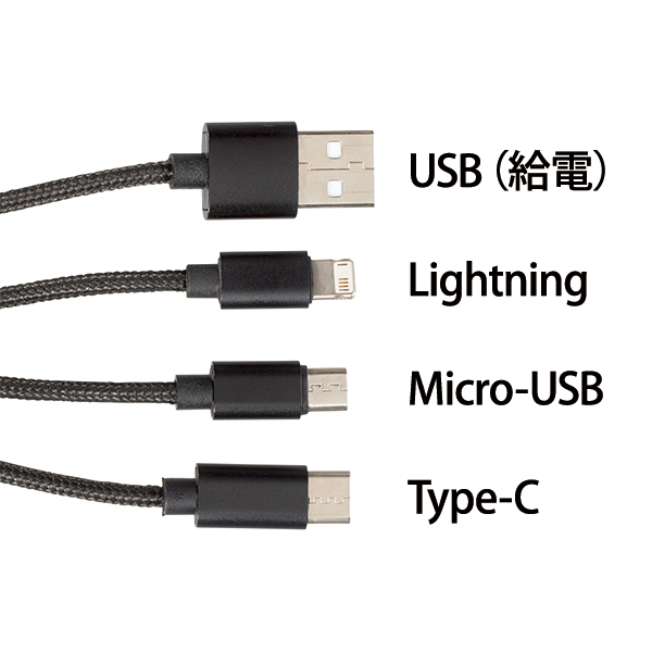 ・Lightningコネクタ、Micro-USBコネクタ、Type-Cコネクタ