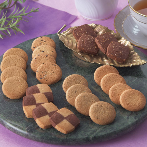 紅茶、チョコアーモンド、カフェキャラメル、モザイク、プレーン、セサミ×各4枚(計24枚)