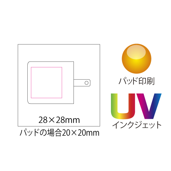 - ■可能サイズ: パッド印刷/縦20×横20mm、インクジェット印刷/縦28×横28mm