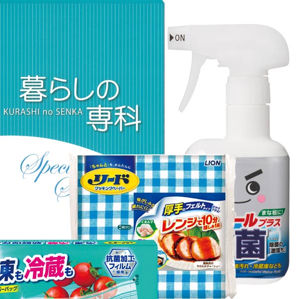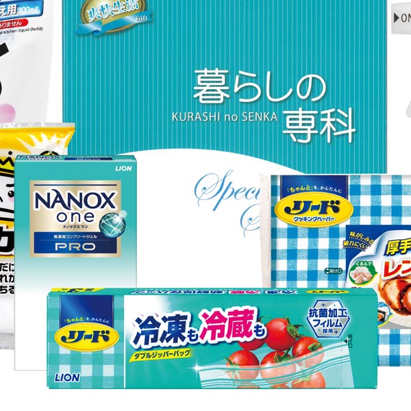 レック 除菌の激落ちくん320ml×1、レック 除菌の激落ちくん300ml(詰め替え)×1、ライオン NANOX one PRO(10g×2袋)×1、ライオン リード冷凍も冷蔵も新鮮保存バッグS3枚×1、ライオン リードヘルシークッキングペーパー小4枚×1、ピカ王ミニ×1