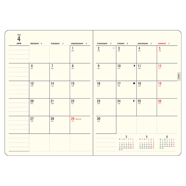 月曜始まりのブロックタイプのレイアウトで、一週間の予定を見開きで整理・確認することができます!