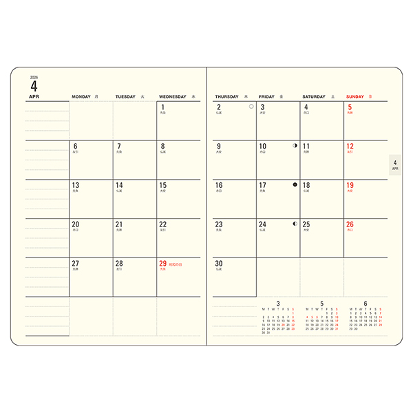 月曜始まりのためビジネスシーンや学校生活の他にも、プライベートでも使いやすい点が魅力的です!