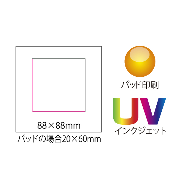 - ■可能サイズ: パッド印刷/縦20×横60mm、インクジェット印刷/縦88×横88mm