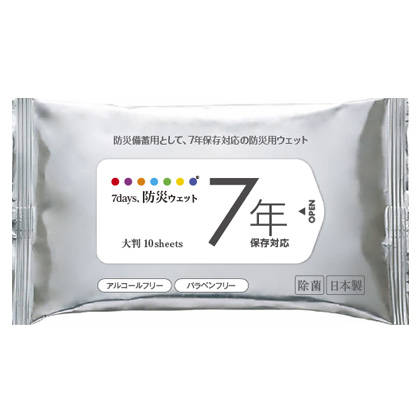 品番:122105 7days防災ウェット 7年保存対応 大判10枚入 ノンアルコールタイプ