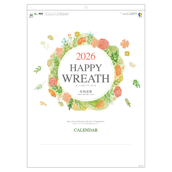 品番:122133 壁掛けカレンダー WREATH(幸せのリース)