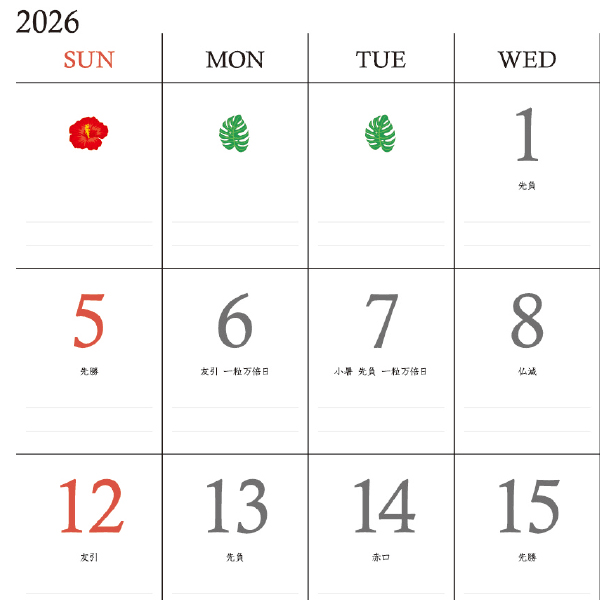 皆の幸せの祈願や安全・豊作・魔除けといったメッセージを届ける壁掛けカレンダーです。