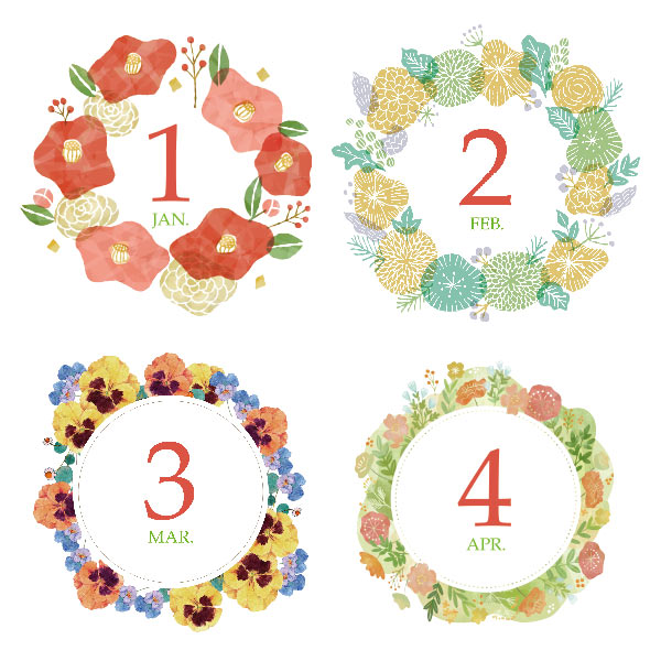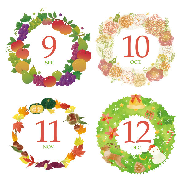 その月ごとにあったリースのデザインで、季節の移ろいを感じられます。