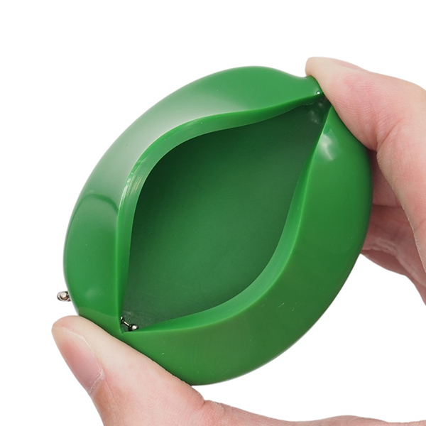 端を左右から中央に向かって押すと口が開き、中身を簡単に出し入れすることができます。