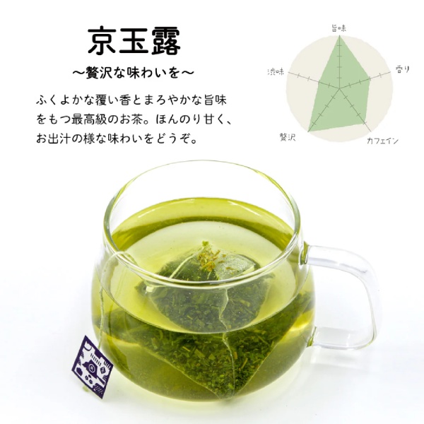 中に入っているお茶の種類は玉露。ほんのり甘くお出しのような旨味です。