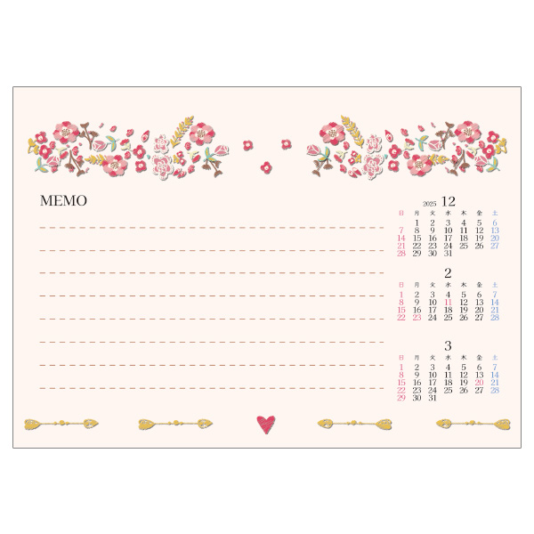 各月の裏面には広いメモ欄がついており、12月裏面には年表を掲載。