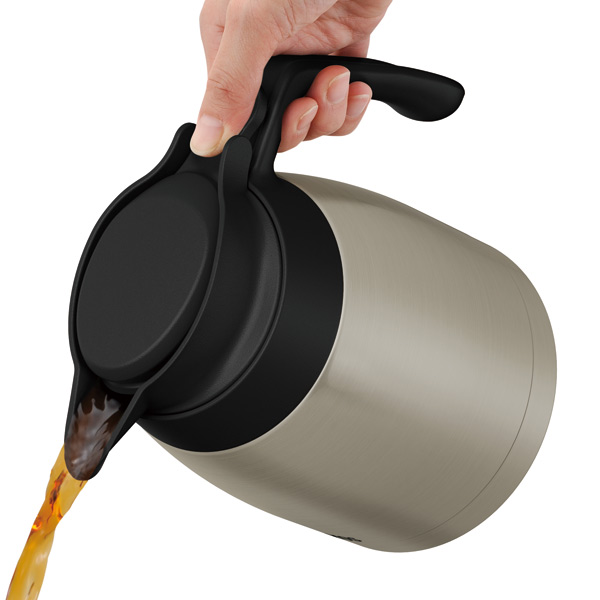 ステンレス製魔法びん構造で高い保湿・保冷力で飲み頃長持ち。