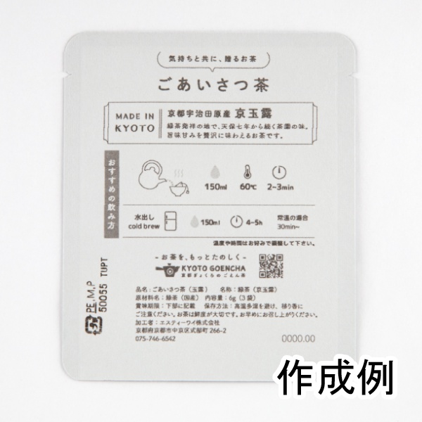 「ごあいさつ茶」の少し横幅が大きくなった大判タイプです。完全オリジナルパッケージでお作りいたします。