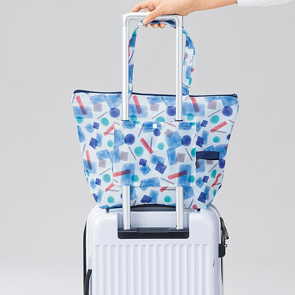 スーツケースのハンドルに通してセットできるので、移動時も快適です。