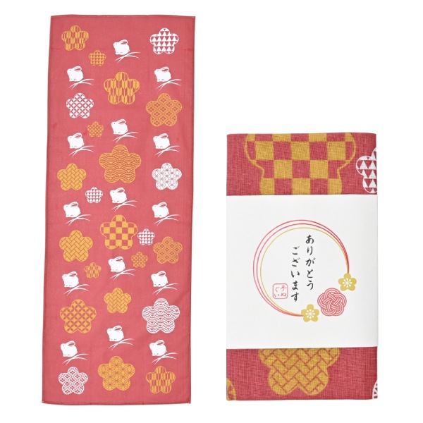 品番:122236 「ありがとうございます」和柄文様手ぬぐい(梅小紋うさぎ)