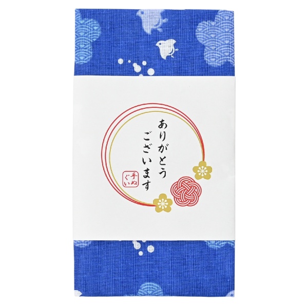 品番:122237 「ありがとうございます」和柄文様手ぬぐい(青海波浜千鳥)