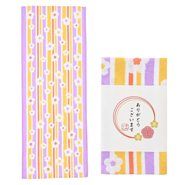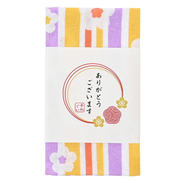 品番:122238 「ありがとうございます」和柄文様手ぬぐい(縦縞梅ちらし)