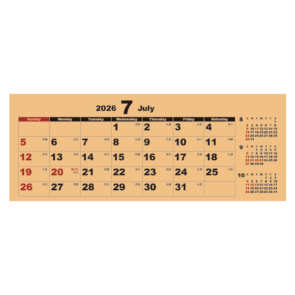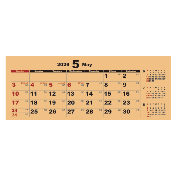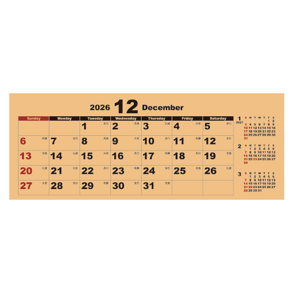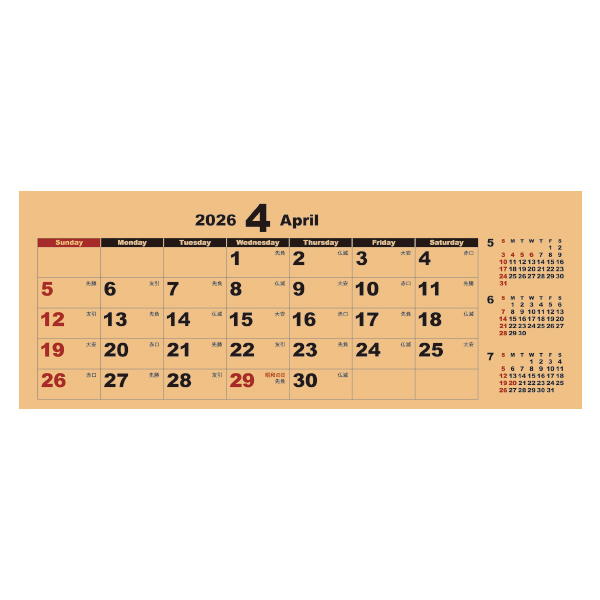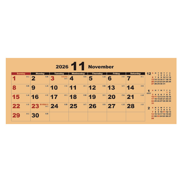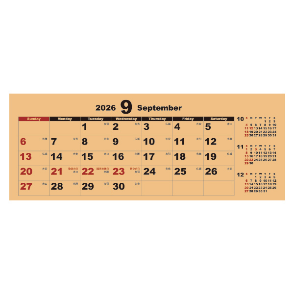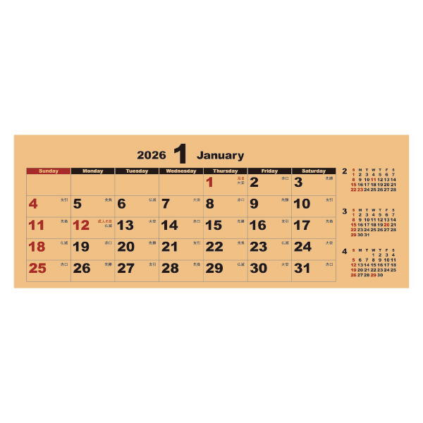 後月3ヶ月のサブカレンダーを掲載しており、先のスケジュールも確認しやすくなっています。