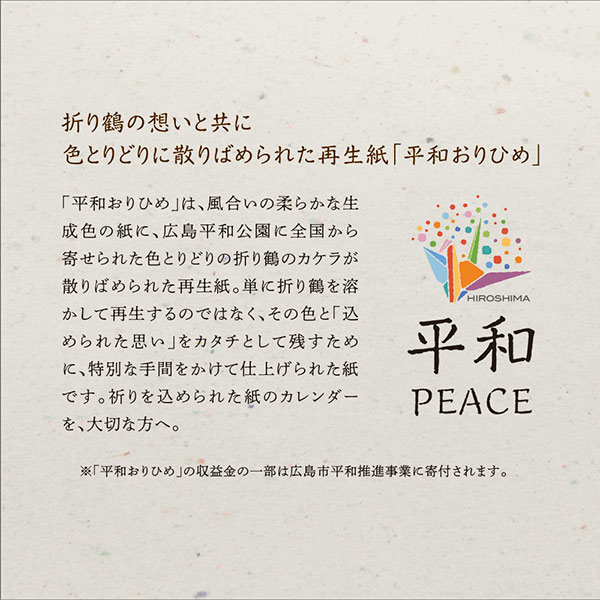 ※「平和おりひめ」の収益金の一部は広島市平和推進事業に寄付されます。