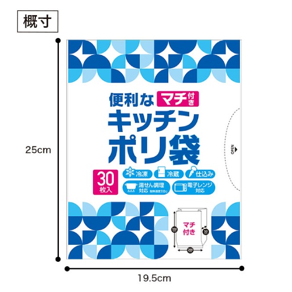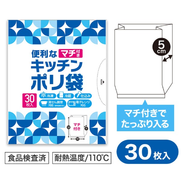 品番:122466 便利なマチ付きキッチンポリ袋(30枚入り)