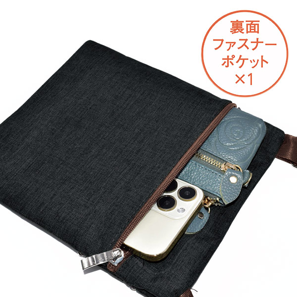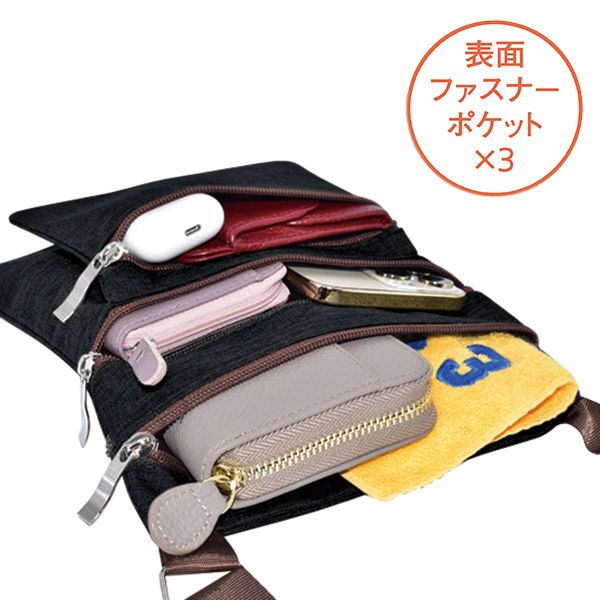 表面ファスナーポケット×3&裏面ファスナーポケット×1個付きで、