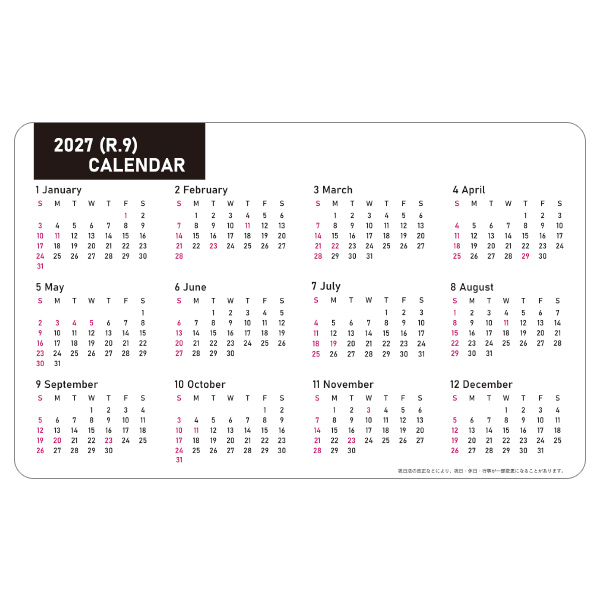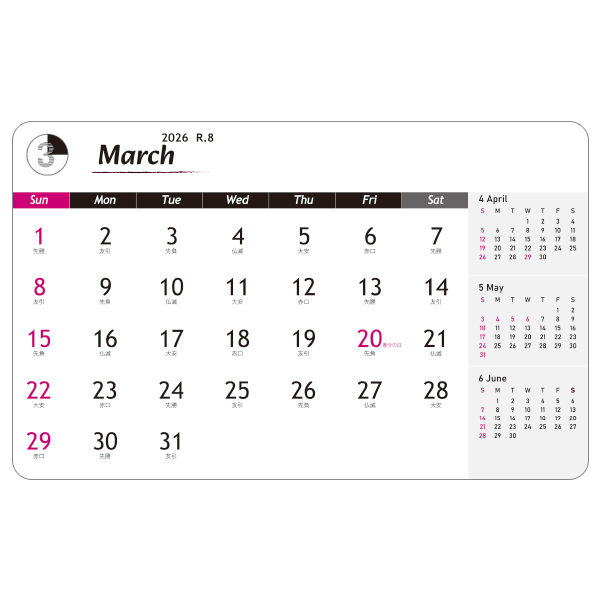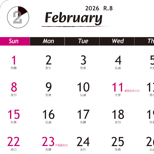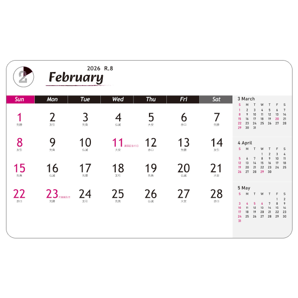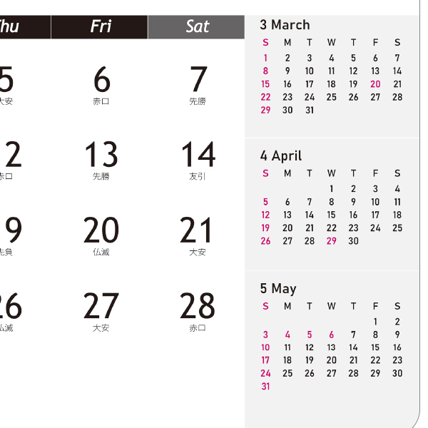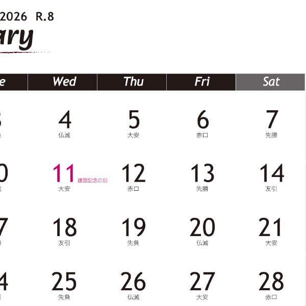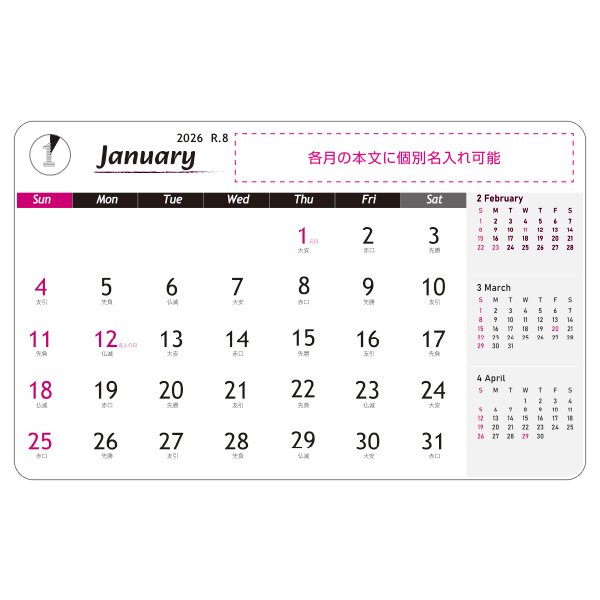 本文には六曜が記載されていますが、六曜なしも受注生産でご用意が可能!
