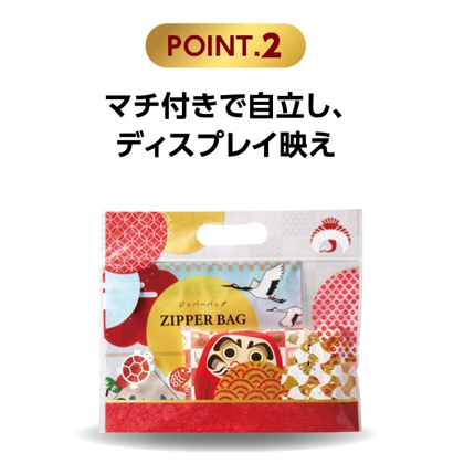 ・マチ付きで自立し、店頭での陳列などで目立ちます。