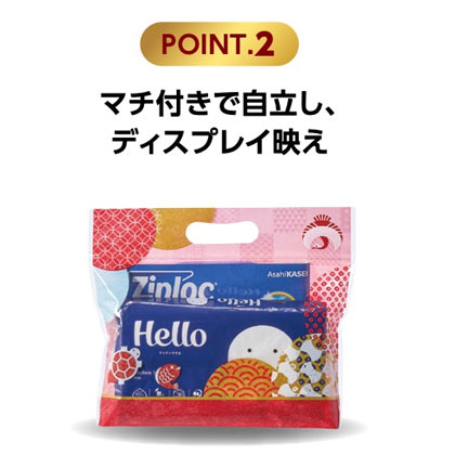 ・マチ付きで自立し、店頭での陳列などで目立ちます。