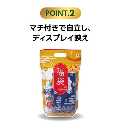 ・マチ付きで自立し、店頭での陳列などで目立ちます。