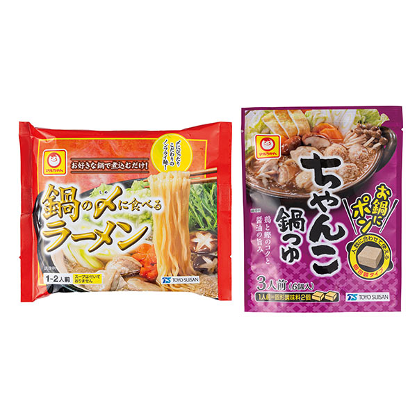 東洋水産 お鍋にポン 鍋つゆ6個入(3人前)×1、東洋水産 鍋の〆に食べるラーメン70g(1から2人前)×1