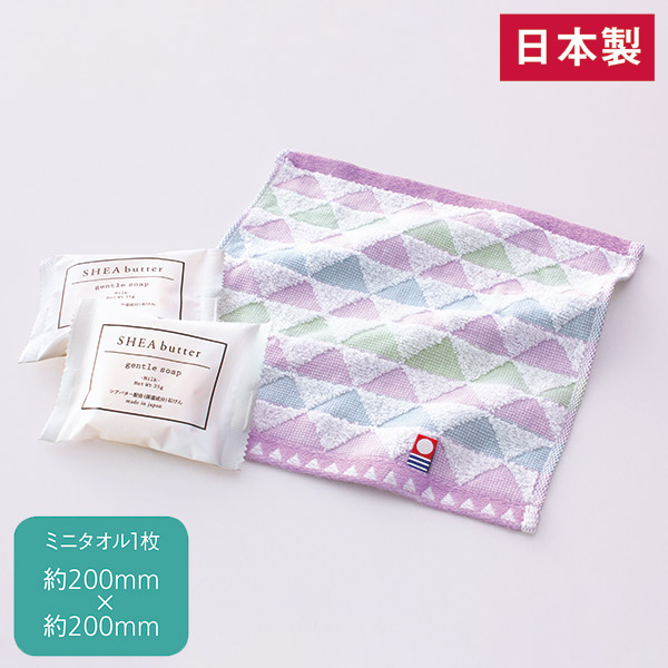 | 商品サイズ: | ミニタオル/約200×200mm、石けん/約50×50×15 mm |