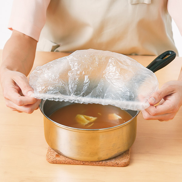お皿や保存容器にかぶせて、食材を乾燥やホコリから守ります。使い捨てタイプなので後片付けも簡単!