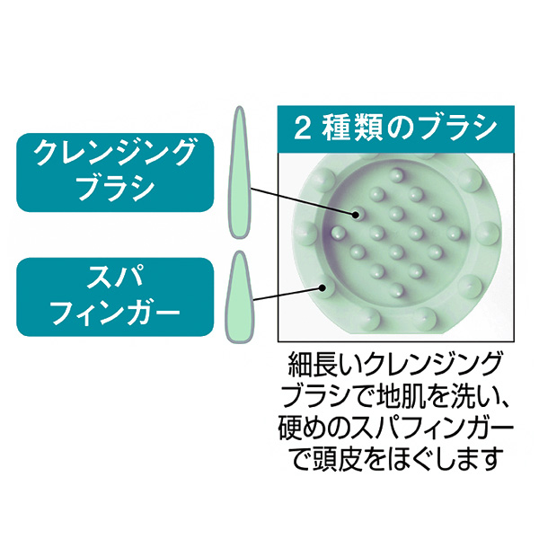 太さの異なる2種類のブラシが頭皮をしっかり刺激し、頭皮をほぐします。