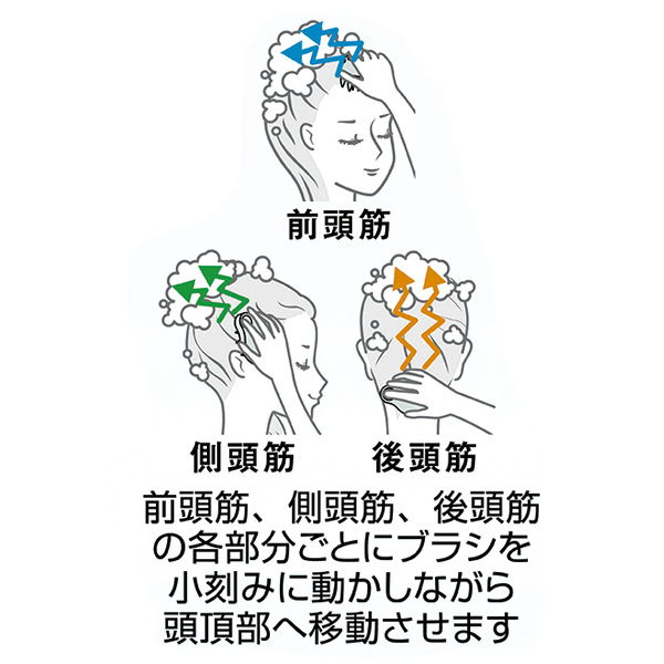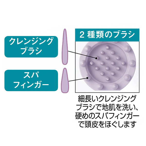 細長いクレンジングブラシで地肌を洗い、硬めのスパフィンガーで頭皮をほぐします。