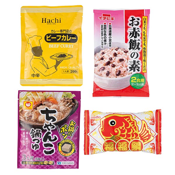 寒い日に嬉しい鍋つゆ、手軽に贅沢感を味わえるビーフカレーなどを詰め合わせたセットです。