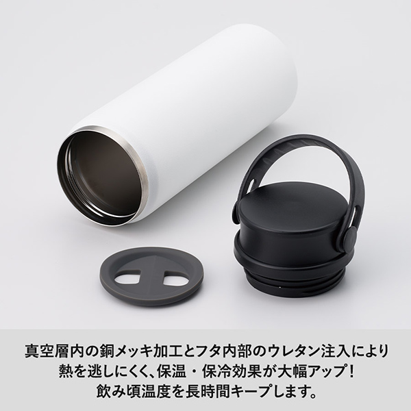 内部構造にもこだわり、真空層の銅メッキ加工+フタ内部ウレタン注入で保温・保冷効果を強化。
