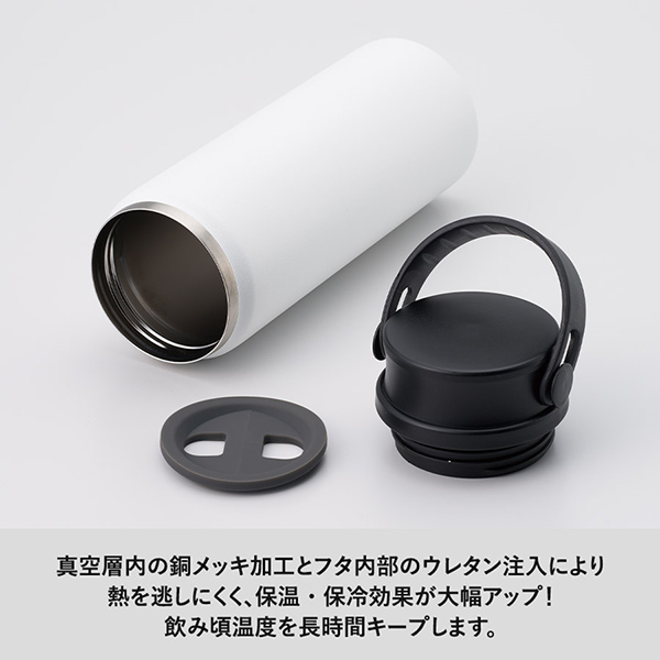 内部は、真空層に銅メッキ加工+フタ内部ウレタン注入の二重構造で、保温・保冷性能をさらに強化。