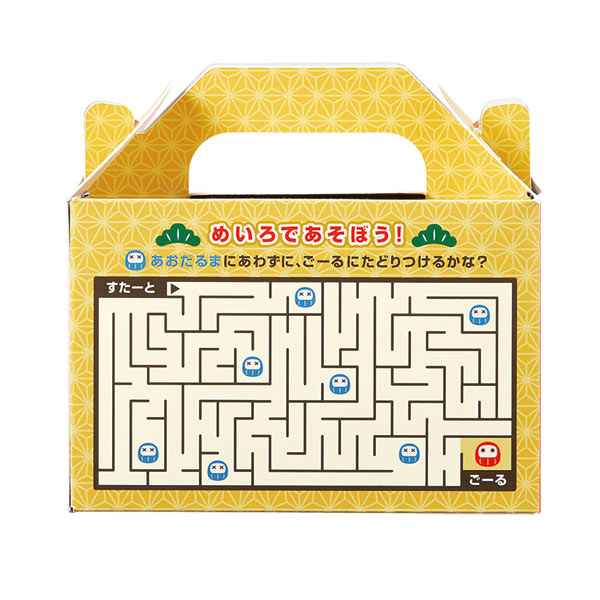化粧箱の裏面は楽しい迷路になっています。