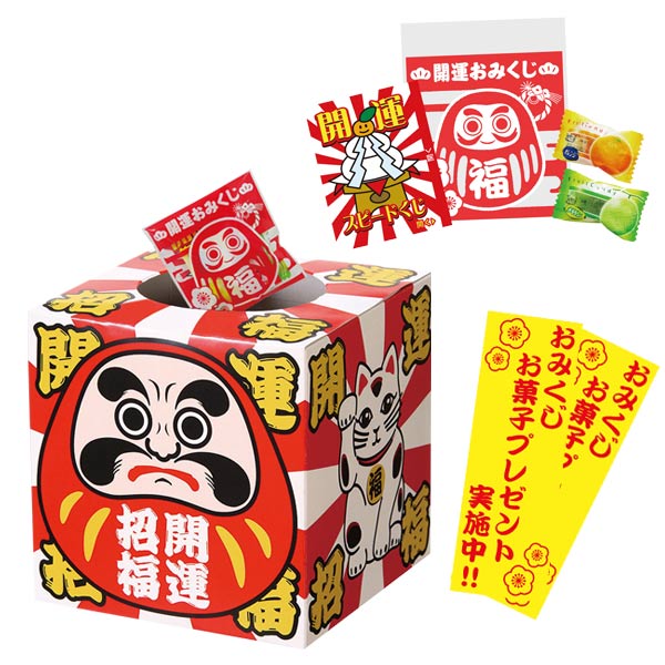 おみくじお菓子セット×100、ボックス×1、店頭用お知らせPOP×2