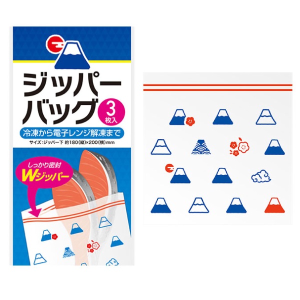 富士山デザインのジッパーバッグはWジッパー仕様で汁モレも安心。