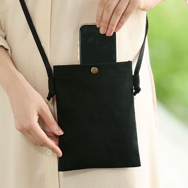 10オンスの丈夫なコットン素材で、スマホや小物を安心して持ち歩けます。