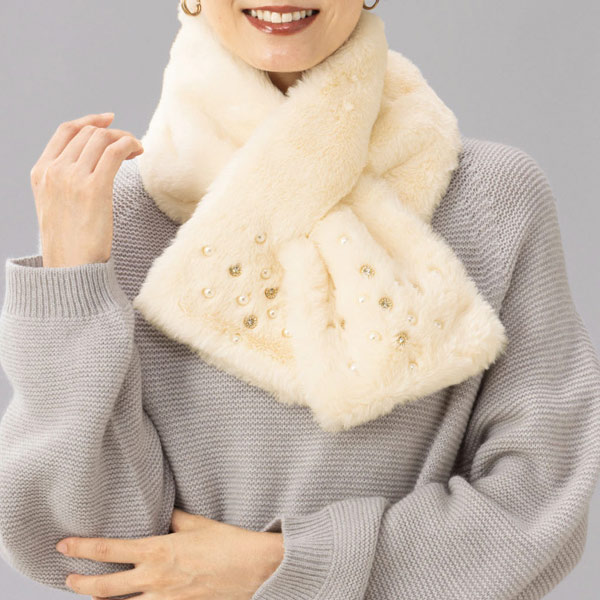 肌触りよく、ボリュームのあるあたたかいファーマフラーです。