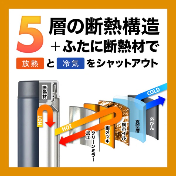 独自技術の5層断熱構造と断熱材入りのふたにより、6時間後でも驚くほどの高温をキープ!
